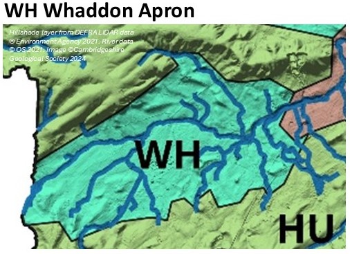 The Whaddon Apron is a broad southwest-northeast aligned depression drained by the upper reaches of the River Rhee and its tributaries. It is located between the Western Plateau and the Heydon Chalk Uplands. The elevation is typically in the range 20 to 40m OD and the clay-rich soils are often poorly drained. There are also fragments of River Terrace Deposits and an Alluvial floodplain. It is underlain by Gault Clay and West Melbury Marly Chalk, and the thin Cambridge Greensand at their junction was worked for coprolites by open-cast mining in the late 19th Century.